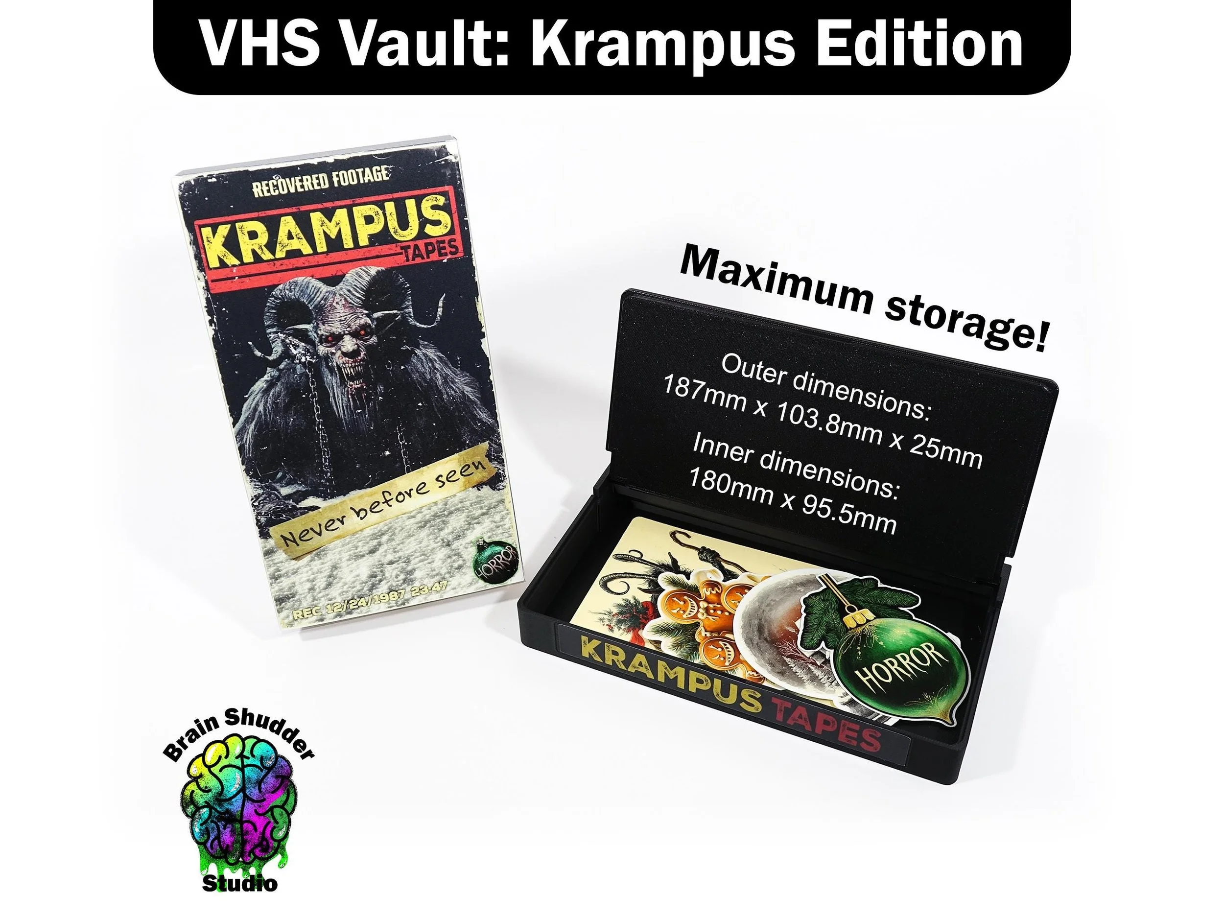 Krampus Categories: All Horror Halloween Child's Play Jaws Friday the 13th Nightmare on Elm St Leprechaun Killer Klowns Creepshow Frankenstein Krampus Misery The Evil Dead The Exorcist The NUN My Bloody Valentine Alien The Shining Hellraiser Sci-Fi Robocop Alien Back to the Future Ghostbusters Post Apocalyptic Coasters Mousepads Bookmarks Dioramas Pins Keychains Labels Earrings Stickers Box Sets Greeting Cards Tote Bags Art Prints All / Horror / Krampus VHS Vault: Krampus Edition | Secret Storage Box $20.00